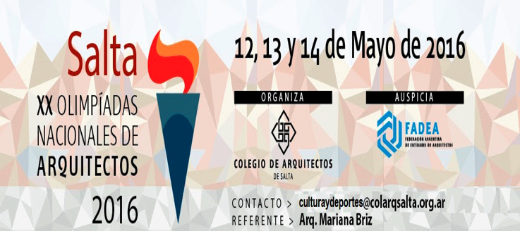 Informes: Arquitecta Mariana Briz - Correo electronico: culturaydeportes@colarqsalta.org.ar